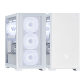 ![]() G-GEAR White Edition | LEDライティングには高光量を誇る 側面発光対応の6基のRGB LEDファンを搭載。電源ボタン横に配置されたライティングボタンを押すだけで、お好みの発色や光り方に変更することができます。 |
